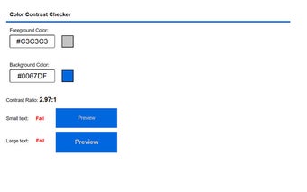 Oprócz wyświetlania współczynnika kontrastu, Color Contrast Checker oferuje funkcję podglądu tekstu, pozwalając użytkownikom zobaczyć, jak wybrane kolory będą wyglądać w rzeczywistych zastosowaniach. Określa również, czy kontrast spełnia wymagane standardy zarówno dla małych, jak i dużych rozmiarów tekstu, co czyni go niezbędnym narzędziem dla każdego, kto dba o dostępność w sieci i jakość projektowania.